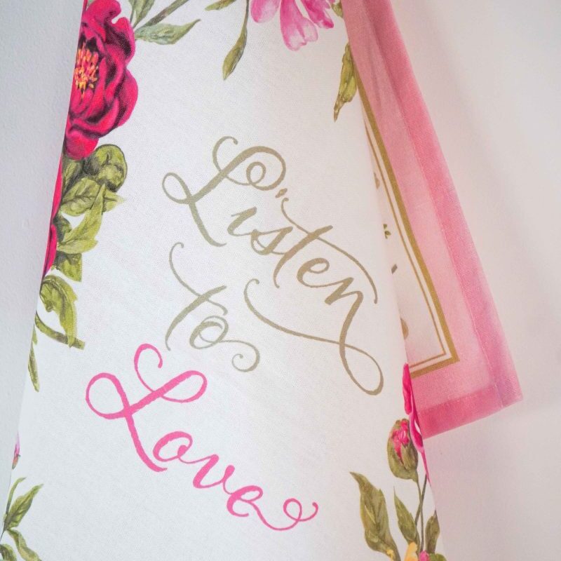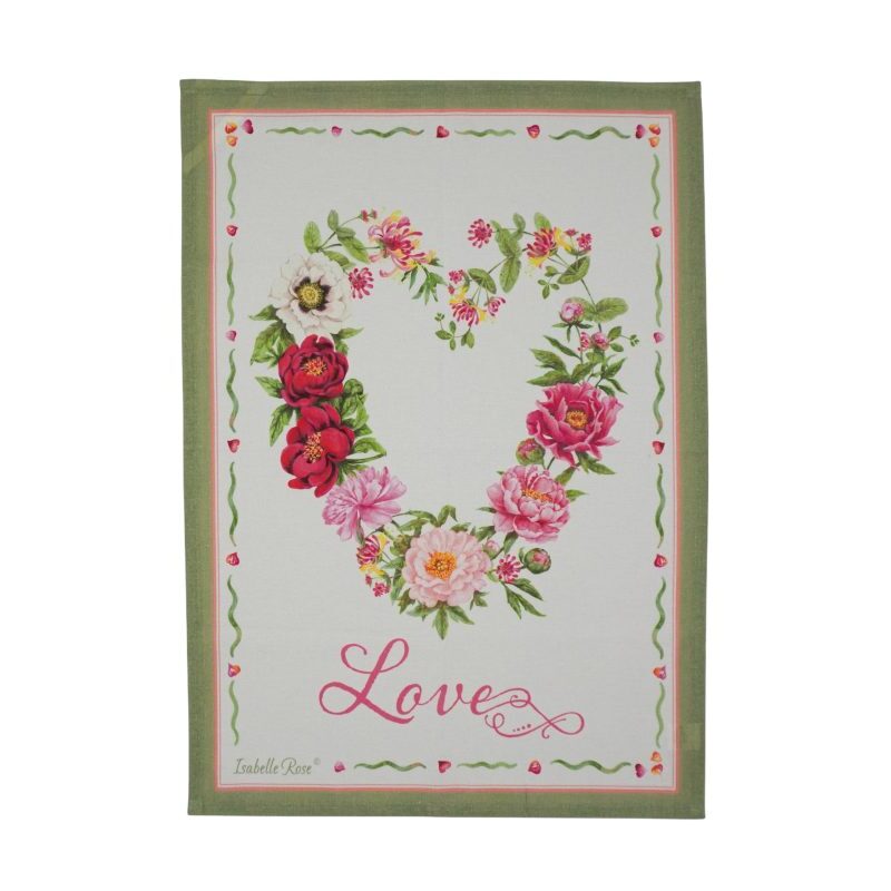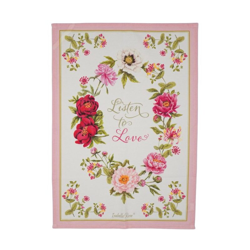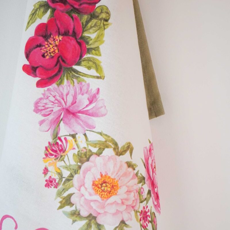 Köögirätik armsa pojengiõie mustriga. Mõõdud: 50 × 70 cm Materjal: 100% puuvill