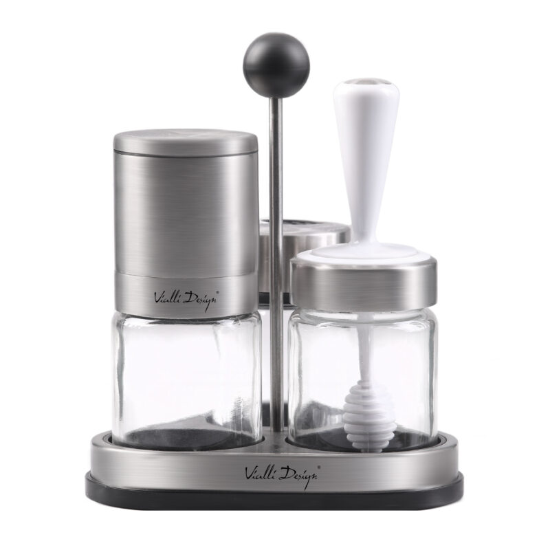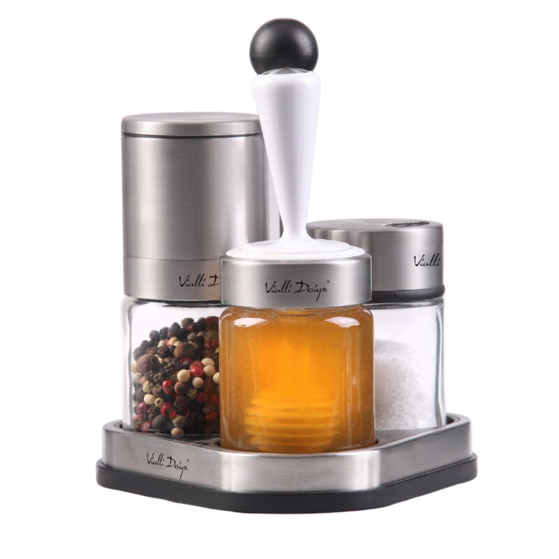 Ten niezwykle poręczny zestaw do przypraw i miodu SOHO zapewni ci komfort użytkowania oraz wzbogaci wystrój twojej kuchni. Dzięki higienicznemu dozownikowi zachowasz
