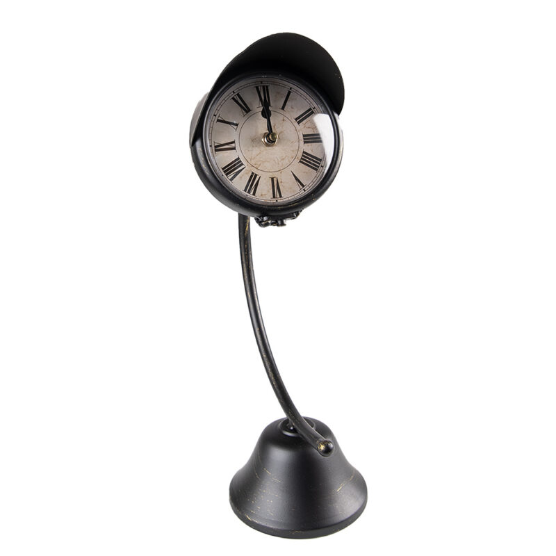 Ilus must industriaalne metallist lauakell valge sihverplaadi ja Rooma numbritega. Sihverplaadi läbimõõt on 10 cm ja see töötab 1x AA patareiga. Kella mõõdud 12x20x37 cm