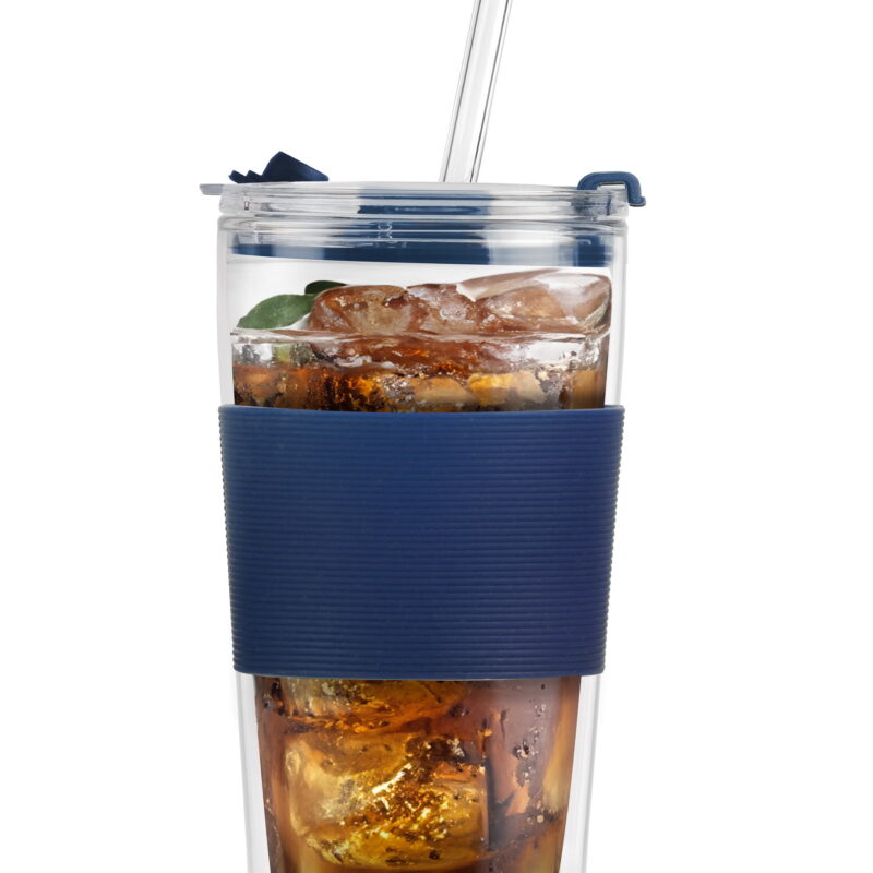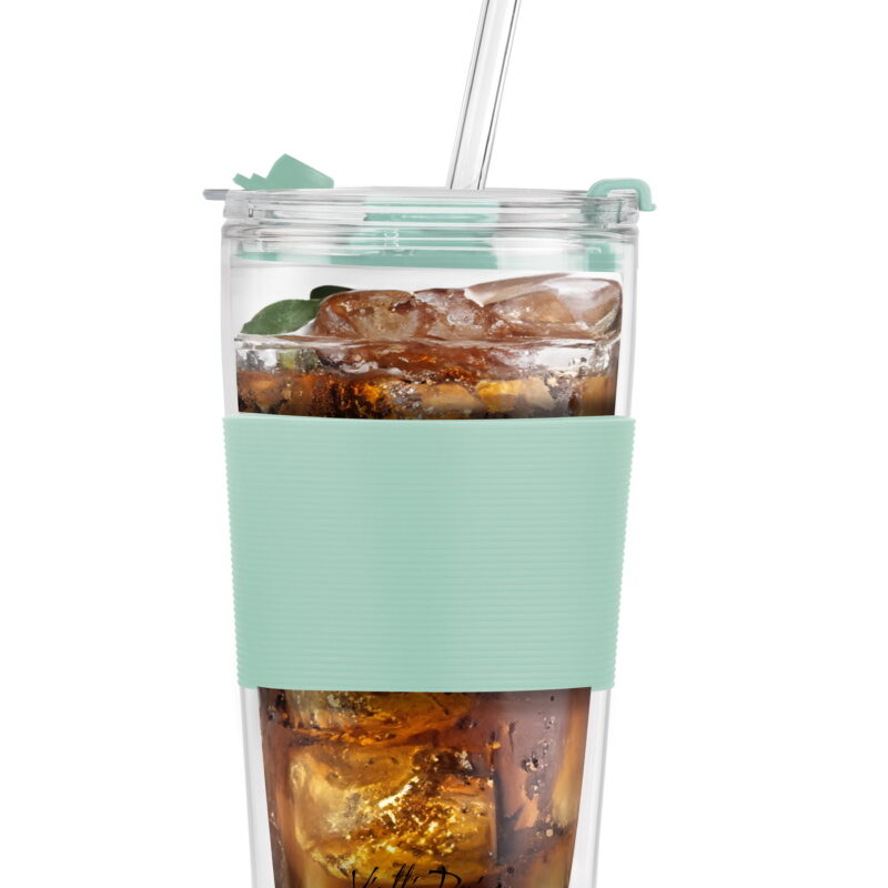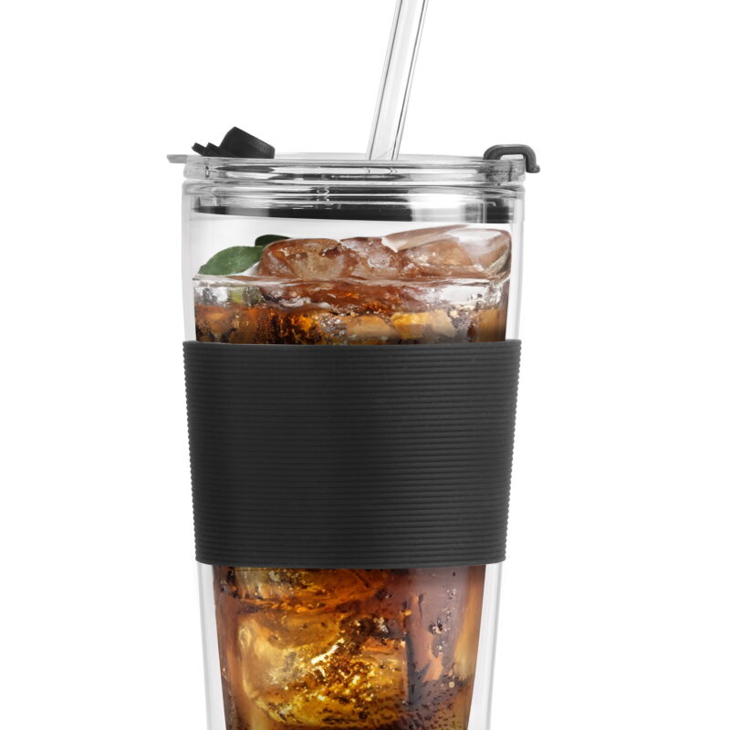 Kruusil on kaheotstarbeline sulgur; olenevalt teie eelistustest saate kasutada keskset ava ja kõrt või juua otse kruusist läbi teise ava. Silikoonotsaga klaasist kõrs muudab joomise erakordselt mugavaks.