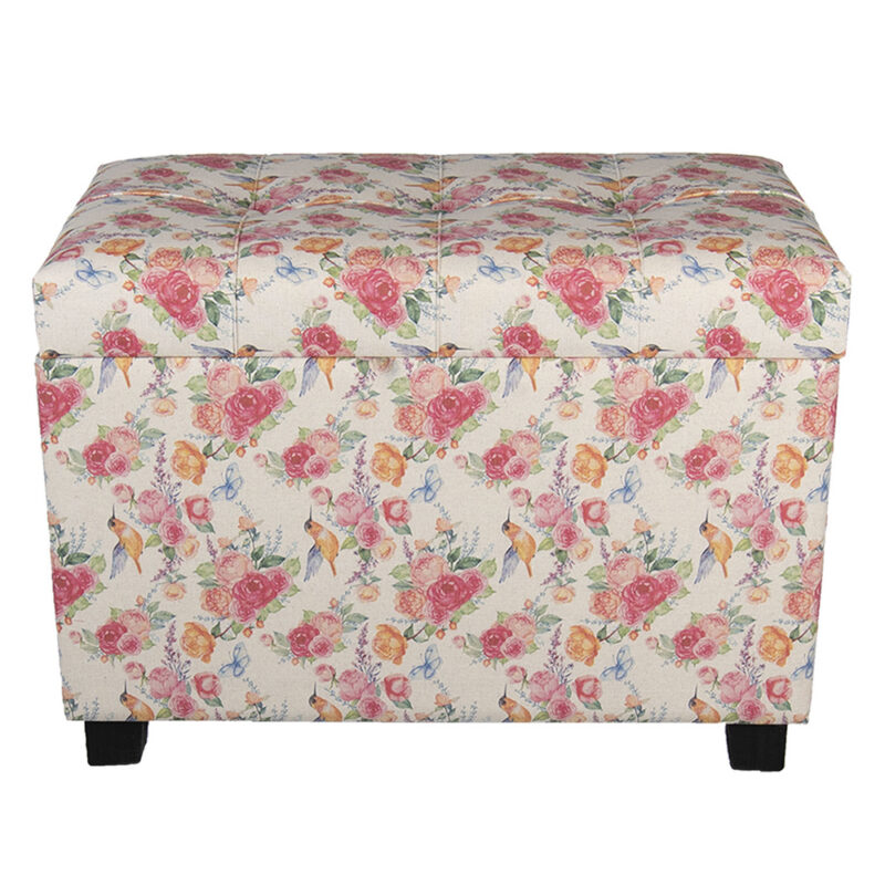Romantilises stiilis roosa-valge kirjust kangast tumba lillemotiiviga. Ius ja romantiline tumba lillemustriga roosades, punastes ja valgetes toonides. Ristkülikukujuline kuju ja pehme polsterdatud kangas muudavad selle mugavaks ja dekoratiivseks täienduseks igale ruumile. Tumba ei ole mitte ainult istumisase, vaid seda saab kasutada ka käepärase hoiukastina. See on mitmekülgne mööbliese, mis on nii praktiline kui ka stiilne. Tumba mõõdud 60x36x43cm.