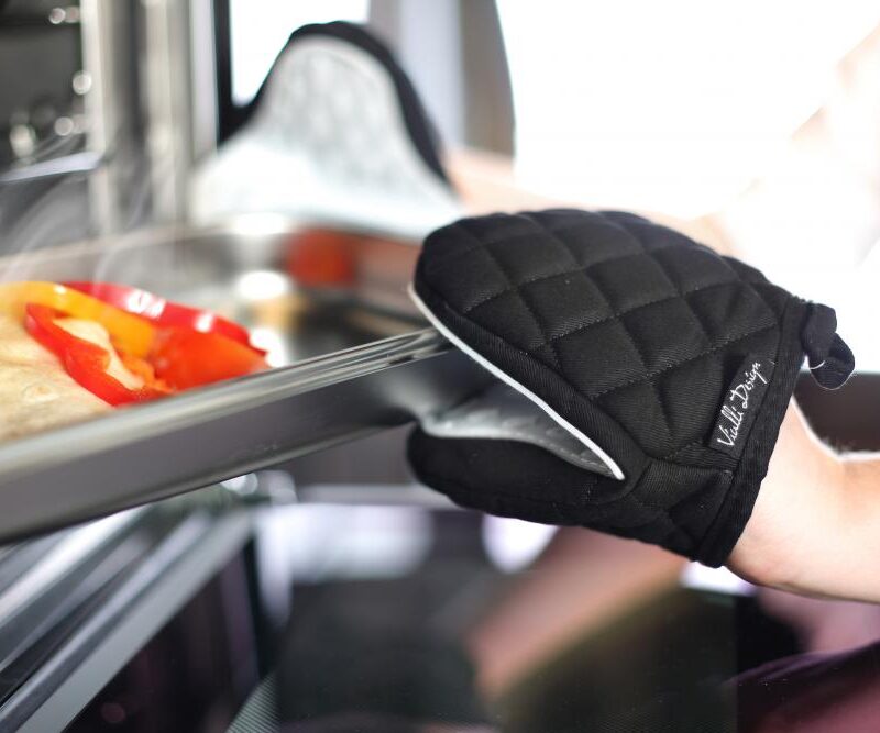 Vialli Designi käepärane ja lühike Livio ahjukinnas on valmistatud kõrgeima kvaliteediga materjalidest, 100% puuvillast, ja kinda sisemine osa on kaetud paksu silikoonkihiga, mis talub kuni 260 kraadi Celsiuse järgi temperatuuri. Tepitud originaalkinnas on hädavajalik aksessuaar igas köögis – seda saab kiiresti kätte panna ja ära võtta. See garanteerib termilise ohutuse ja kaitse käeselja ja -sisemise põletuste eest. Toote värviversioonid sobivad ideaalselt iga köögi interjööri ja näevad suurepärased välja köögikubudel, reelingutel või pliidi ääres rippudes.