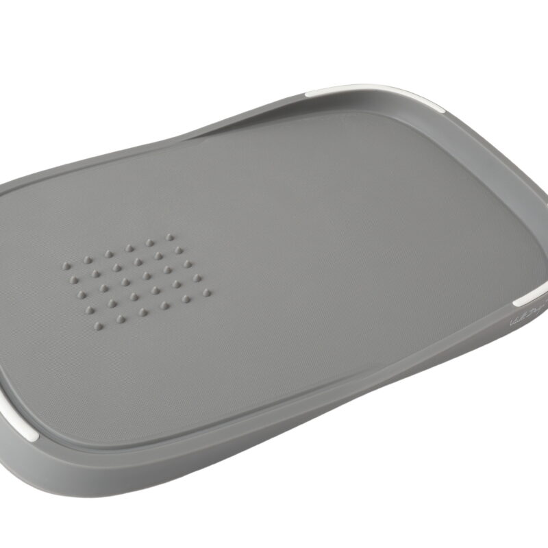 See kahepoolne lõikelaud on loodud töötama kõigi toiduainetega! Üks külg sobib ideaalselt sibula, liha, linnuliha ja kala tükeldamiseks, teine aga puu- ja köögiviljade ning kookide jaoks. Mitmefunktsionaalne laud hoiab laua või tööpinna peal hästi tänu libisemiskindlale plastpinnale, mis tagab ohutu viilutamise ja hakkimise.