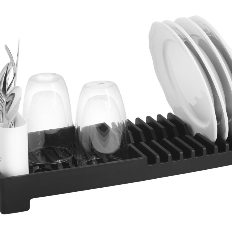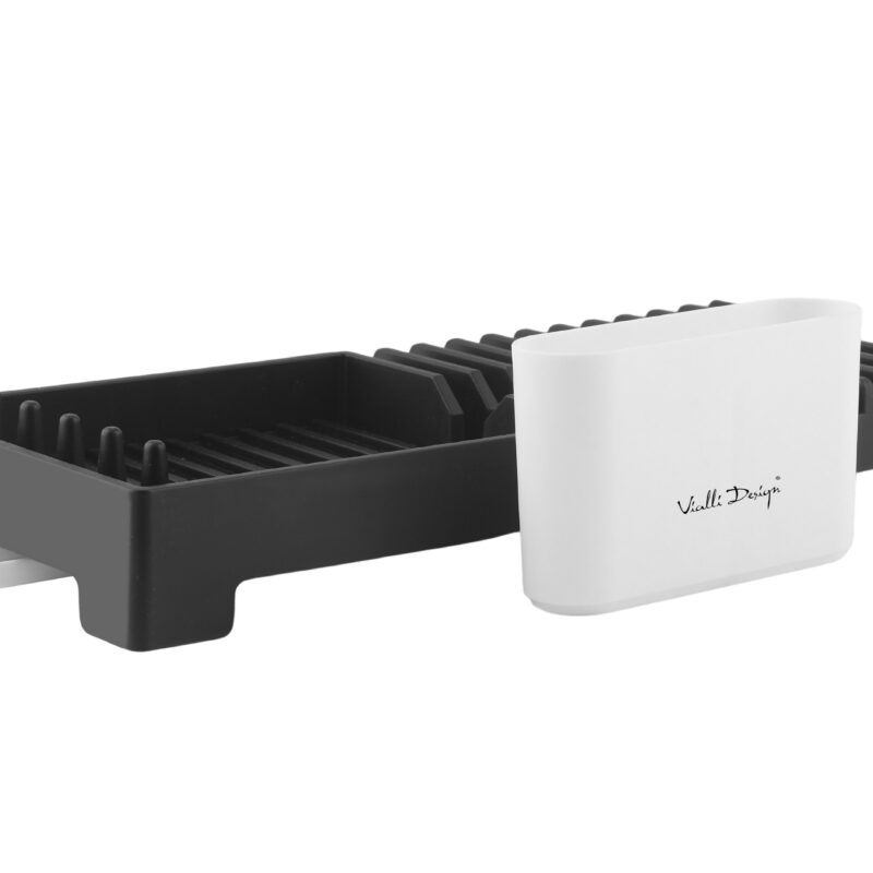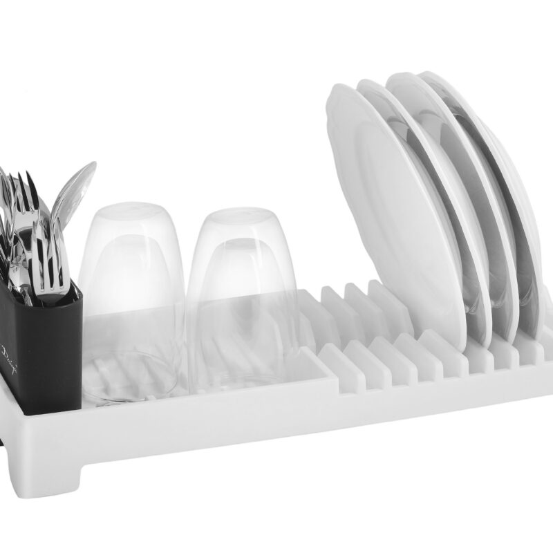 Moodne Livio Duo nõude- ja söögiriistade kuivatusrest sobib eriti hästi väikestesse ja kompaktsetesse köökidesse. See mahutab hõlpsalt kõik nõud, sealhulgas taldrikud, klaasid ja kruusid. Tänu oma väikesele suurusele mahub see hõlpsasti isegi kitsastesse ja väikestesse köögitasapindadesse.
