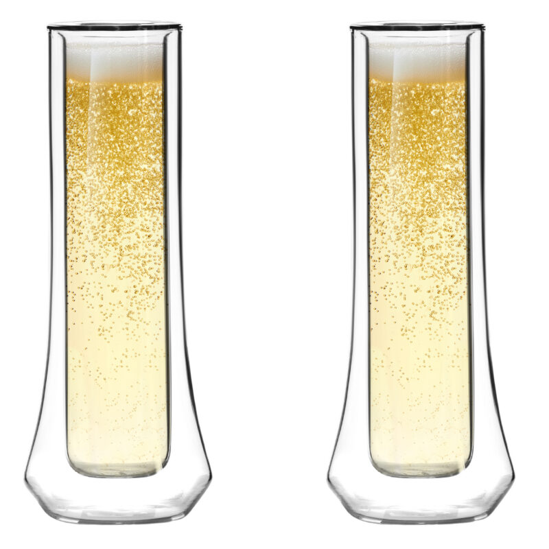 Funktsionaalne ja praktiline kahest kaheseinalisest šampanjaklaasist koosnev komplekt Soho sarjast firmalt Vialli Design.