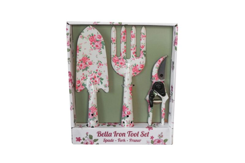 Too oma aiandusrutiini võlu ja funktsionaalsust Bella rauast tööriistakomplektiga. See kaunis lillemustriga trio on loodud nii stiilseks kui ka vastupidavaks ning sisaldab järgmist:
