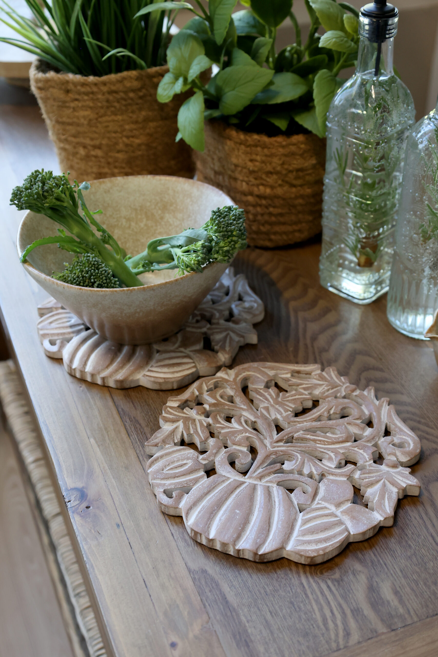 Käsitsi valmistatud naturaalset tooni alus ilusate nikerdustega. Diameeter 20cm.