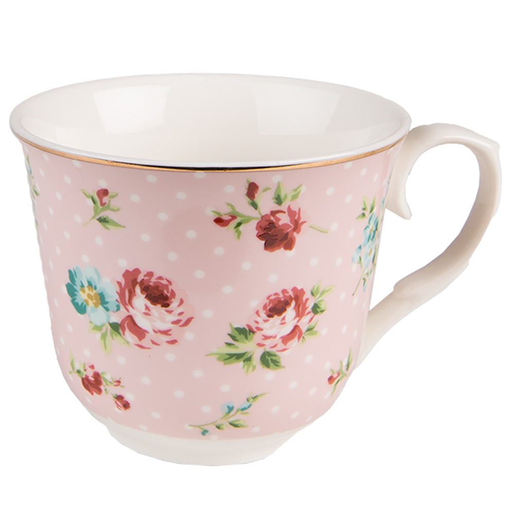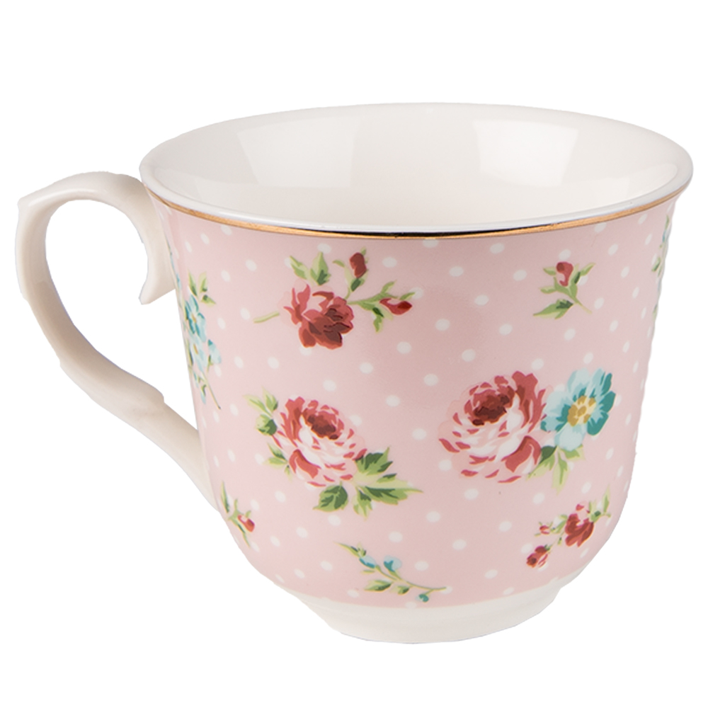Armas romantilise lillemustriga roosa portselanist kohvitass koos alustaldrikuga. Tassi mõõdud on 12x9x7 cm ja alustaldriku Ø 15×2 cm. Mahutavus 250ml.