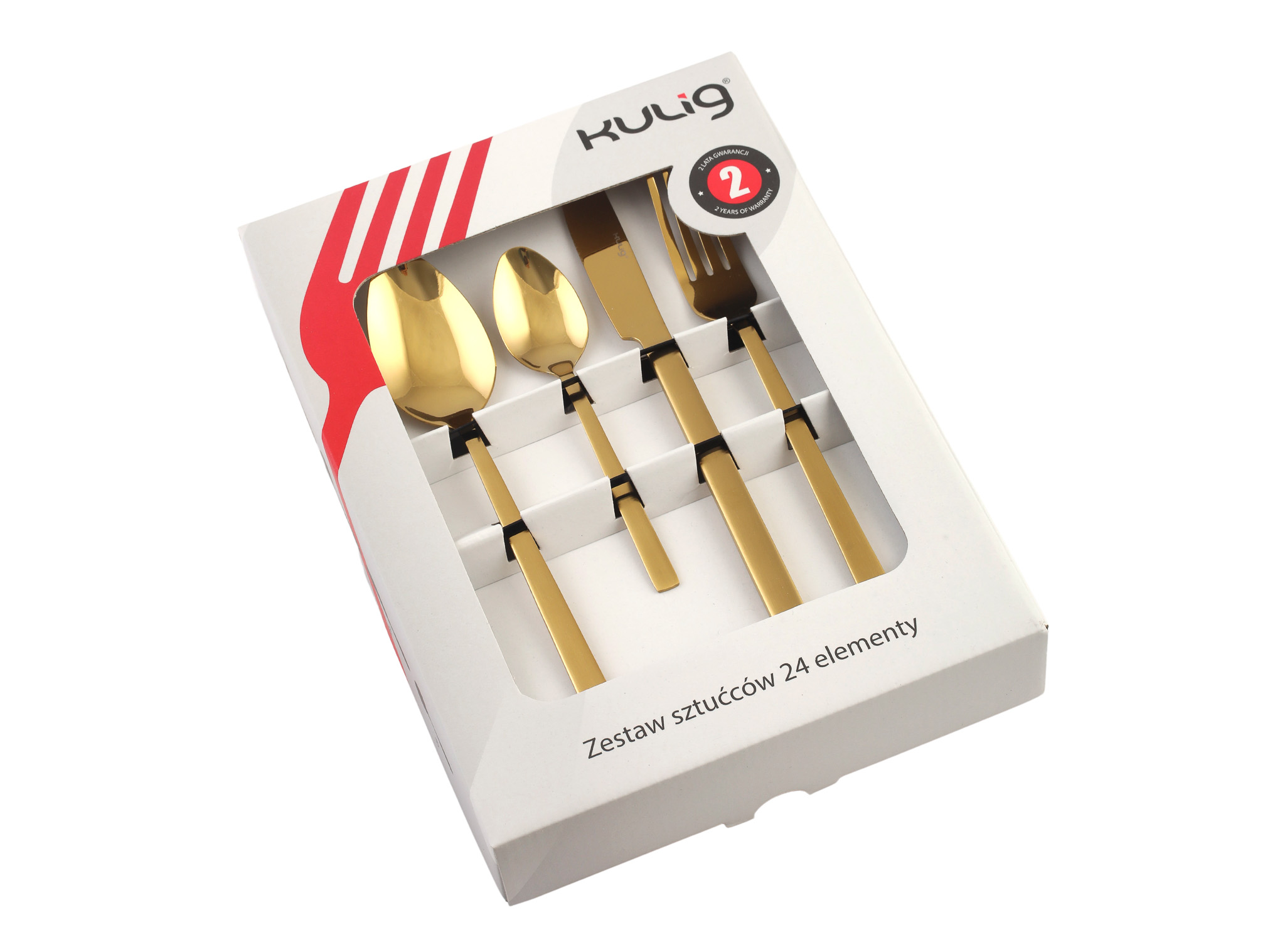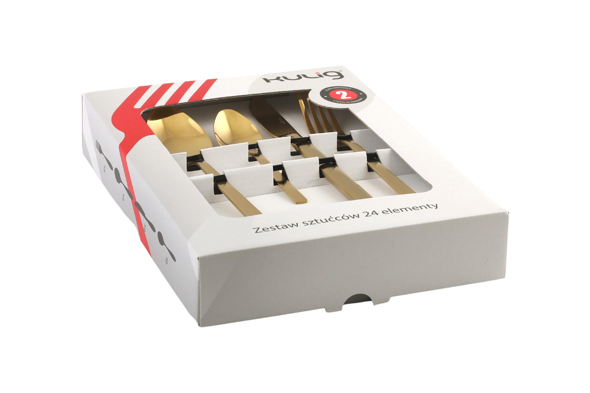 Kuldse ga söögiriistade komplekt, 24 osa karbis