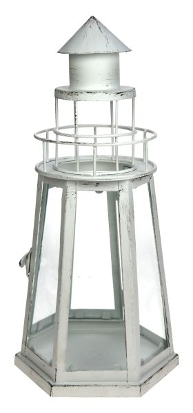 Metallist majakakujuga suur latern. Kõrgus 33cm. Värvus valge, effekti lisavad õrnad kohvipruunid pintslitõmbed.