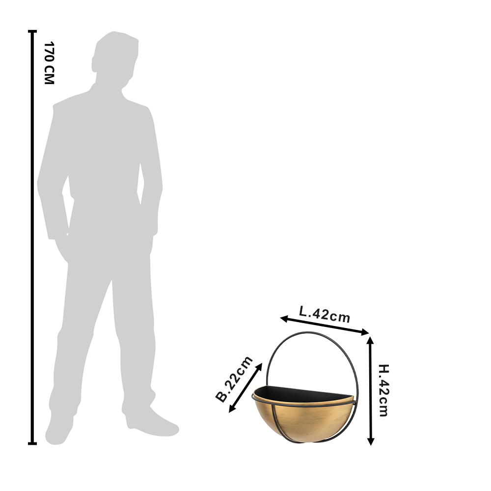 Moodne kuldset värvi metallist lillepott seinale. Mõõdud 42x22x42cm.