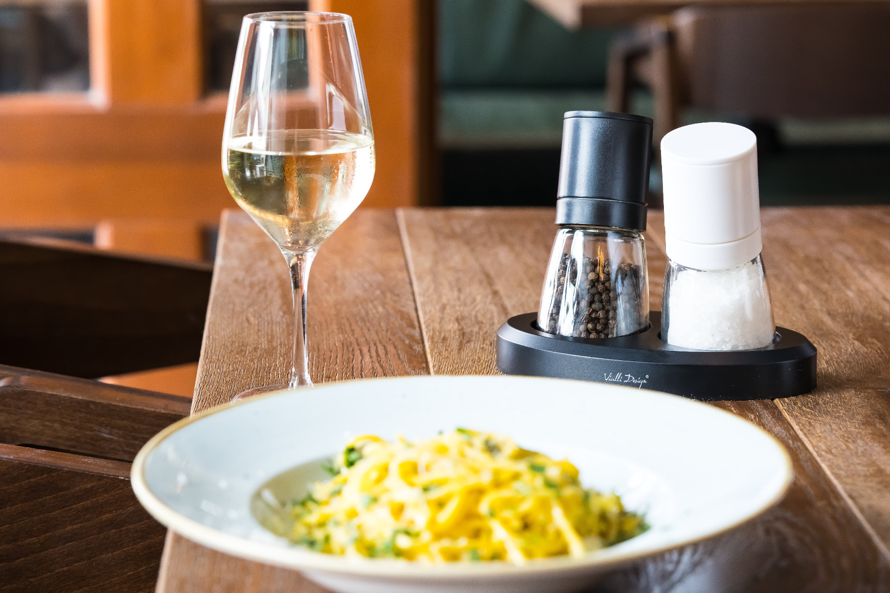See kahest elegantsest ja moodsast soola- ja pipraveskist koosnev komplekt on Vialli Designi uus toode. Selle toote tunnusjoonteks on kvaliteetne töötlus, kasutusmugavus ja atraktiivne välimus. Veskid on valmistatud klaasist ja plastist ning neil on vastupidav ja usaldusväärne keraamiline jahvatusmehhanism. Lisaks pakuvad need reguleeritavat jahvatuspeenust. Veski mustvalge värv koos disainalusega sobib ideaalselt moodsatesse köökidesse ning toode on lisaks praktilistele funktsioonidele ka huvitav dekoratiivne aktsent.