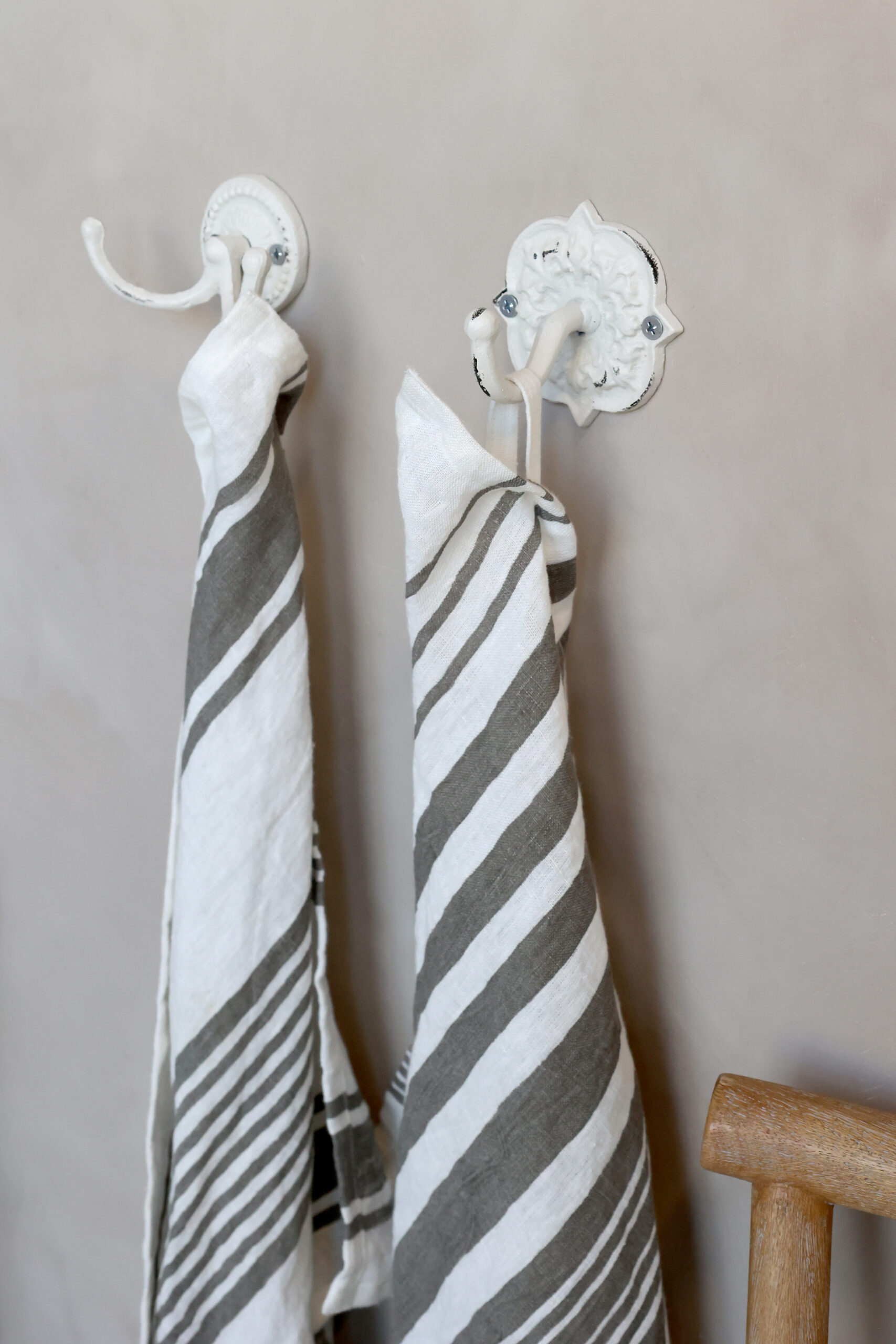Antiikvalge seinanagi hobuseraudadest. Sobib kõigile hobusesõpradele. Need neli malmist valmistatud hobuserauakonksu loovad teie kodus meeleolu, olgu see siis köögis teerätikute jaoks või esikus mantlite jaoks. Muud sobivad kasutusvõimalused: käterätikud vannitoas, võtmete riputamiseks või miks mitte ka hobuserihmade jaoks tallis. Kaks auku võimaldavad kindlalt seinale kinnitada nagi ( kruvid ei kuulu komplekti). Mõõdud 12x30x3cm.