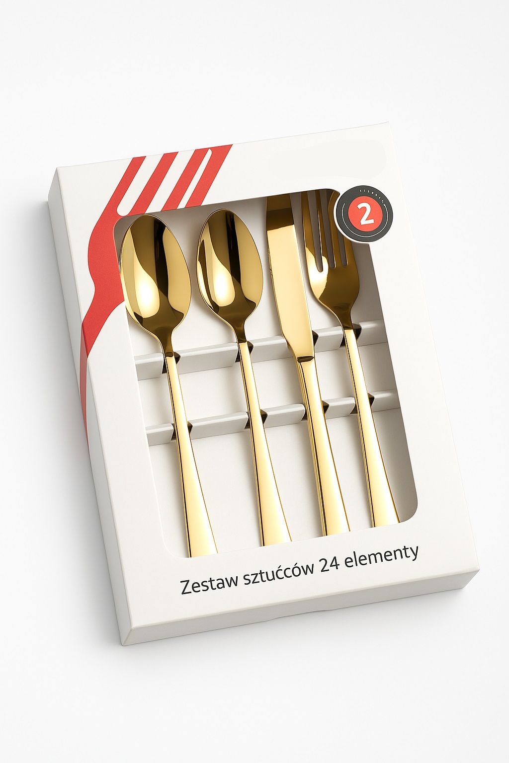 Säravkuldne söögiriistade komplekt, 24 osa karbis