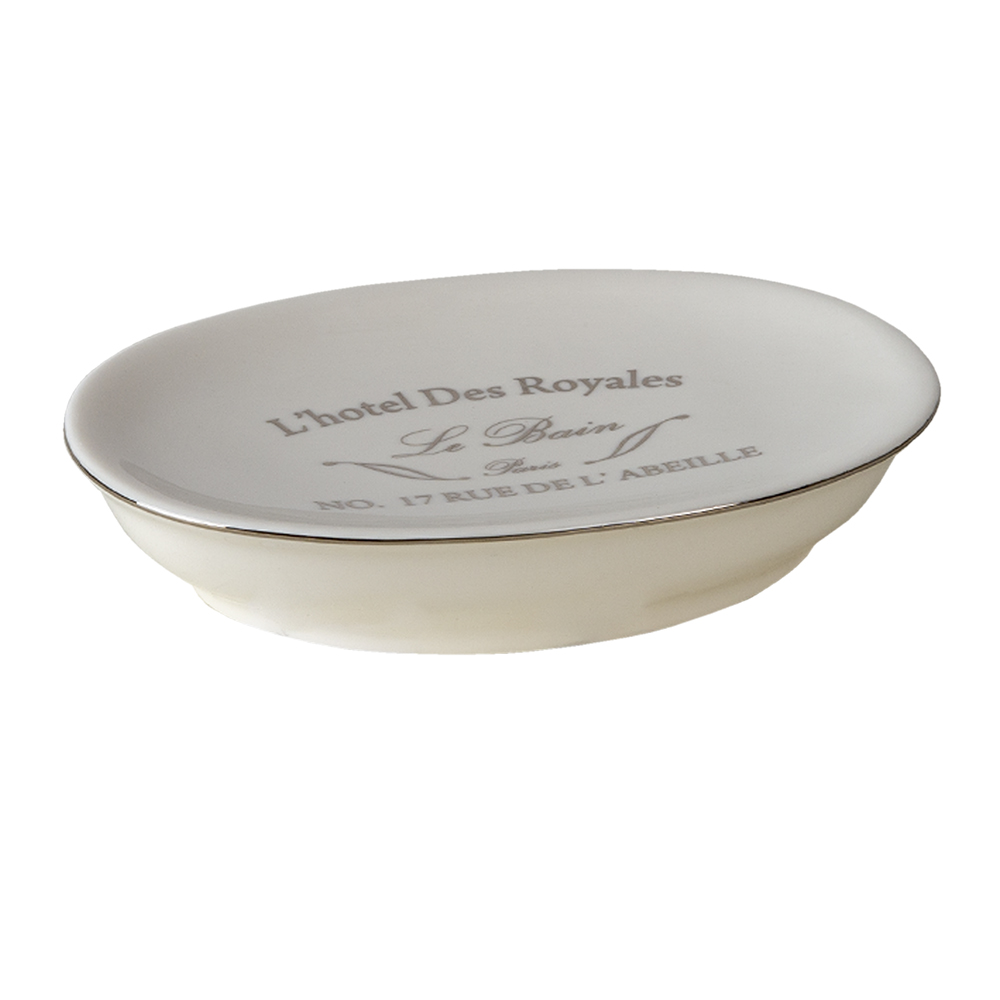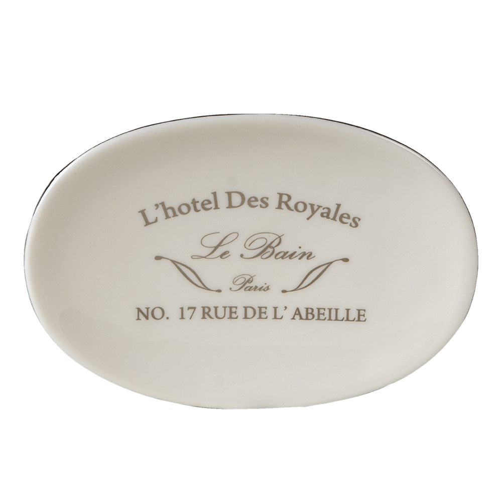See on elegantne ja ajatu seebialus, mis on valmistatud kvaliteetsest valgest keraamikast. Sellel on ovaalne kuju ja peen vintage-ilme, millel on klassikalises stiilis kirjad “l’hoter des royales le bain” ja “no. 17 rue de l’abeille”. See seebialus pole mitte ainult praktiline, vaid ka imeline lisa igale vannitoale. See on ilus ja vastupidav aksessuaar, mis annab teie vannitoale šiki ja hoolitsetud ilme. Mõõdud 14x10x3cm.