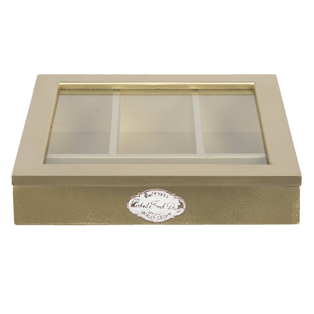 Kuldset värvi puidust söögiriistade karp on praktiline ja elegantne. Karbil on erinevad sektsioonid söögiriistade ja muude köögiriistade korralikuks hoiustamiseks. Kuldne viimistlus annab sellele stiilse välimuse, muutes selle igas köögis kenaks aktsendiks. See söögiriistade karp on mugav lahendus köögi korras hoidmiseks. Mõõdud 30x30x8 cm.
