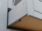 Vitriinkapi sahtlite- ja ukse käepidemed puidust ning liivakarva värvitooniga. Sahtlid vaikselt sulguvad. Mööbel värvitud sooja valge RAL 9003 tooniga. Värvi katvus 85%. Mööbli tagaosa ja sahtlite põhi valmistatud HDF plaadist. Toode tarnitakse detailidena, kaasas intstruktsioon. Vitriinkapp tellimisega, tarneaeg kuni 2 nädalat.