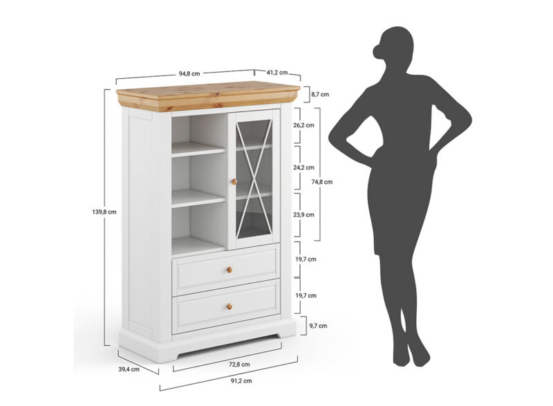 See on ideaalne valik Provence’i, maalähedase ja moodsa stiiliga interjööridesse – vaid mõne hoolikalt valitud aksessuaariga sobib see vitriinkapp igasse interjööri. Tänu oma kompaktsetele mõõtmetele sobib see nii suurematesse ruumidesse kui ka väiksematesse korteritesse, kus iga sentimeeter on oluline.